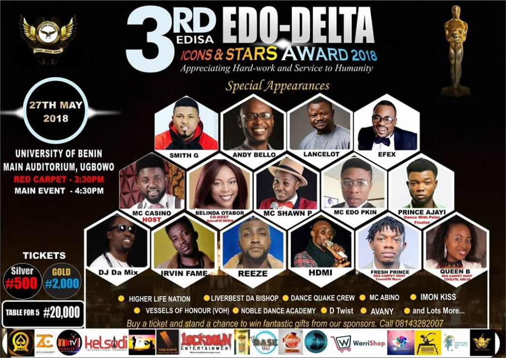 The Edo/Delta Icons and Stars Award is organized to appreciate hardworking individuals and organizations who in one way or the other contributing towards the growth and development of Edo and Delta States. The third edition of the award is scheduled to hold on the 27th of May 2018. The nomination list for the award has been released which contains 30 categories with well deserving nominees in each category. Voting would commence from the 29th of April 2018 and any one can vote through the Edo/Delta Icon and Stars Award vote page on Izivote. The full nomination list is given below;